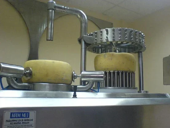 Olgunlaşmış ve sertleşmiş kaşar peynirlerinin işlenmesi için özel olarak tasarlanmış endüstriyel bir dilimleme ekipmanıdır. Eski kaşarın yoğun ve sert yapısına uygun güçlü kesim mekanizması sayesinde pürüzsüz, eşit ve estetik dilimler elde edilmesini sağlar.